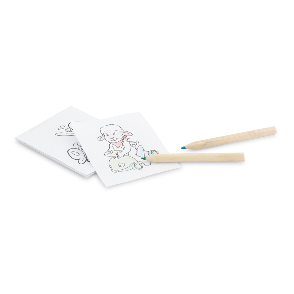 Conjunto para pintar em caixa de papel kraft reciclado. Incluso 6 mini lápis de cor e 15 cartões diferentes para pintar. Produto certificado de acordo com a portaria Inmetro nº423 de 8/out/2021. 73 x 89 x 10 mm