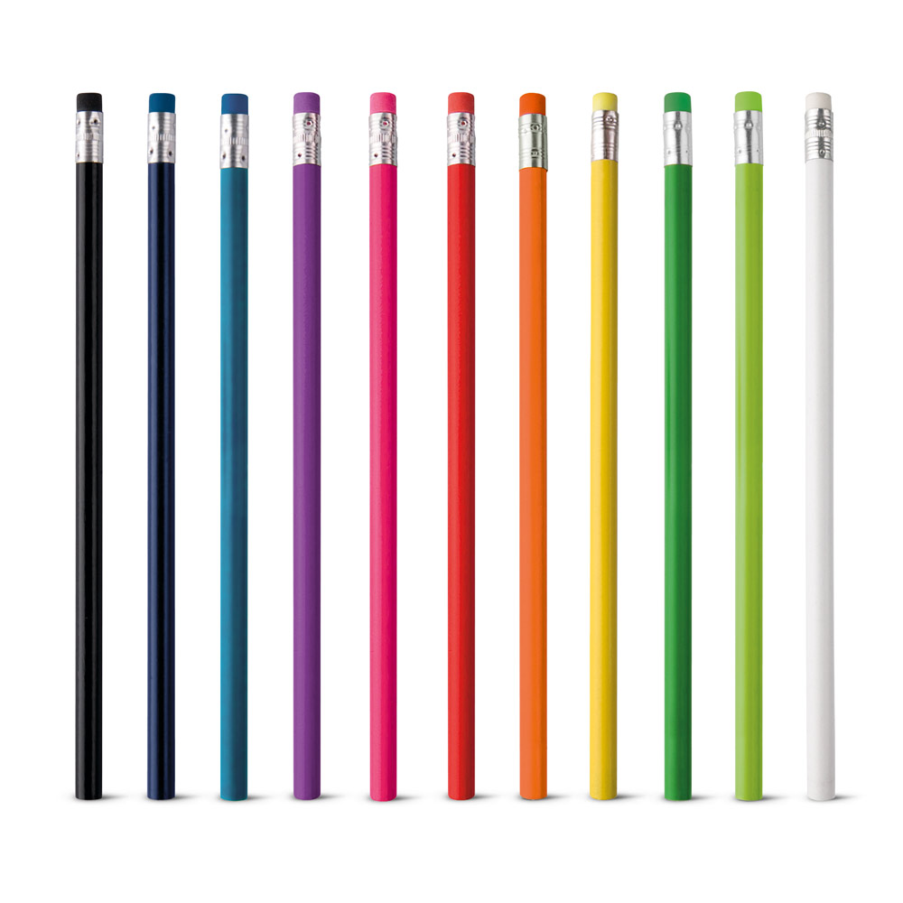 Lápis com borracha. Grau de dureza: HB. Produto certificado de acordo com a portaria Inmetro nº423 de 8/out/2021. ø7 x 190 mm