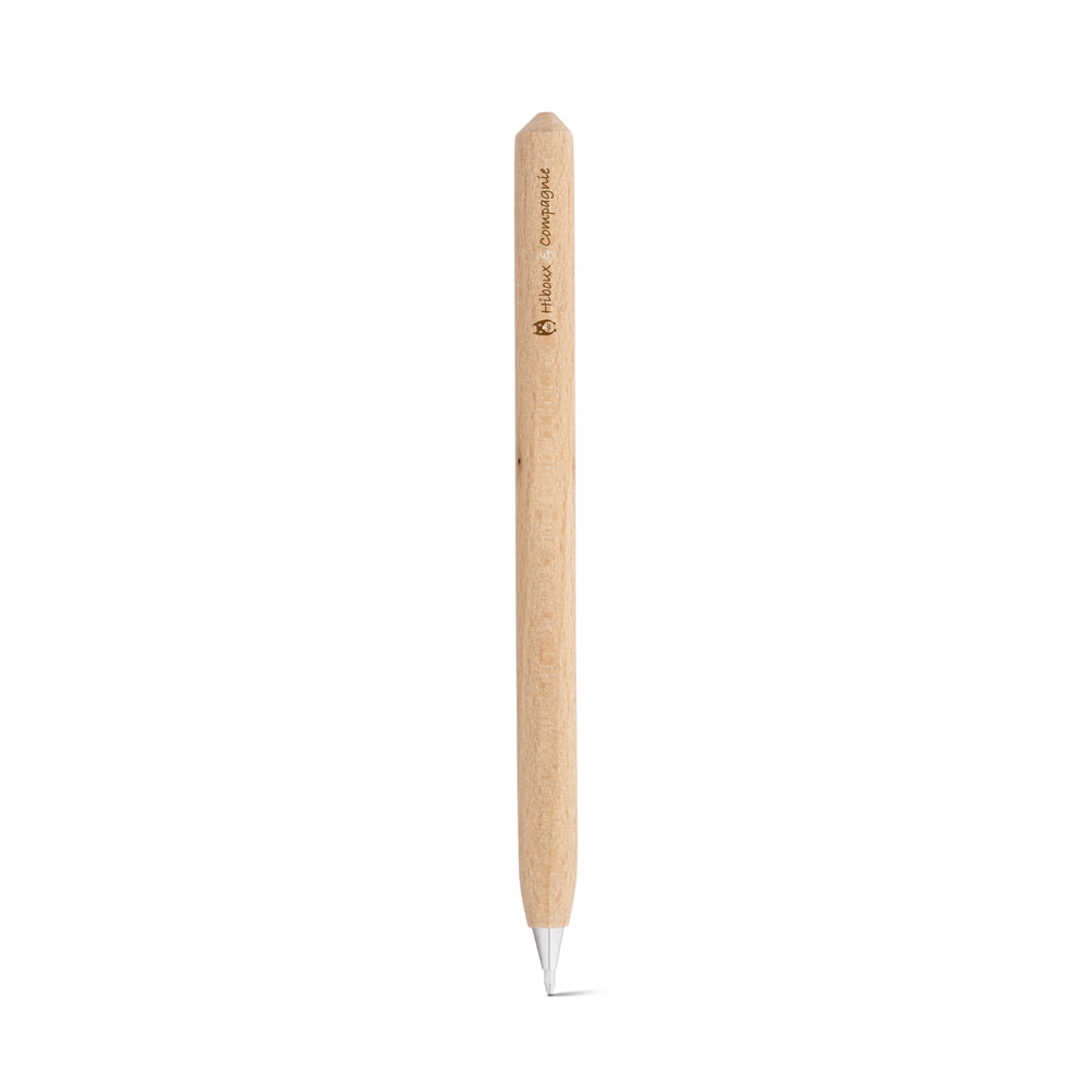 Esferográfica em madeira com tampa transparente. Escrita em azul. A cor e o resultado da impressão nos materiais naturais pode variar entre produtos. ø10 x 150 mm