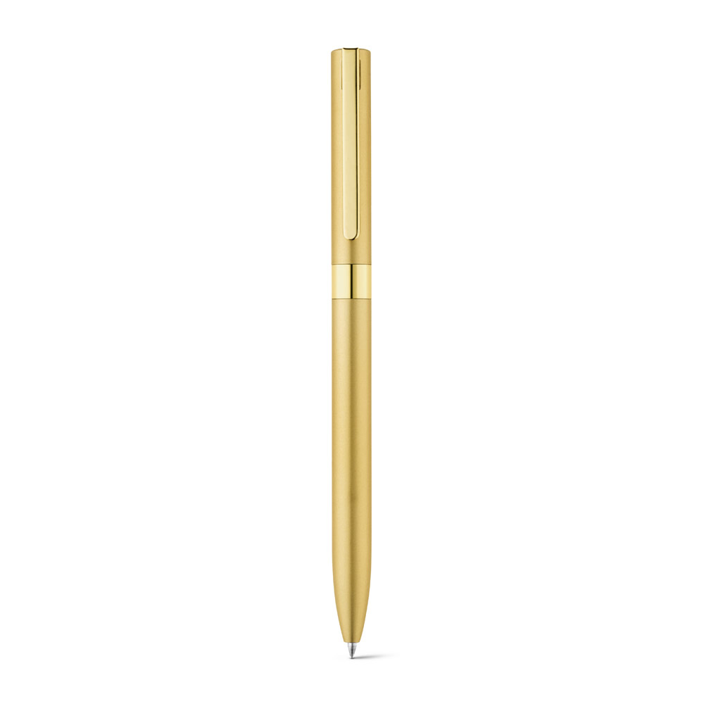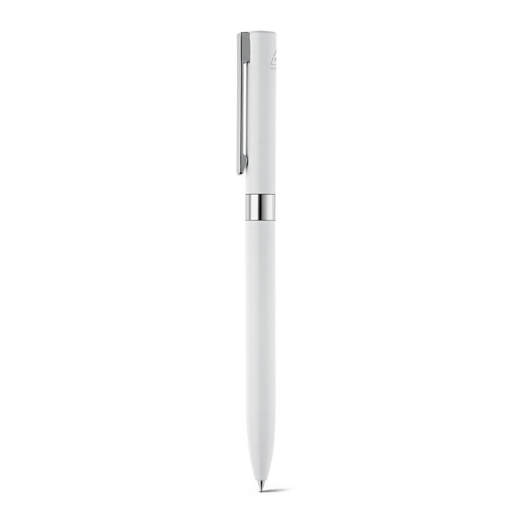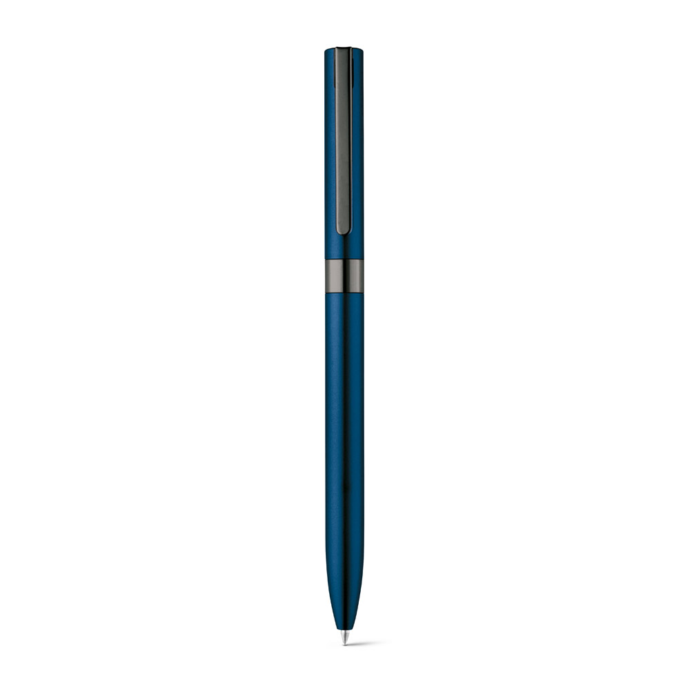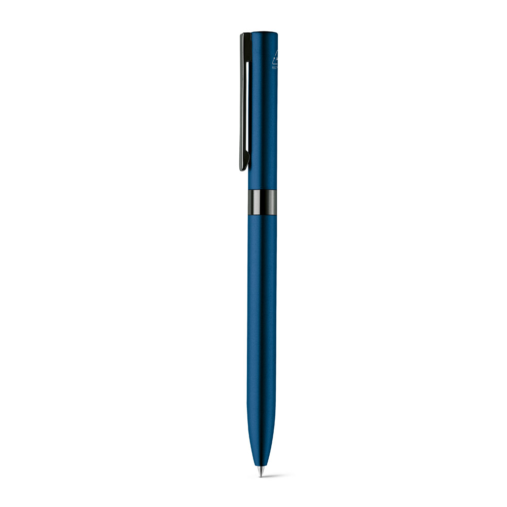 Esferográfica em alumínio 100% reciclado, com clipe em metal. A esferográfica tem mecanismo twist e escrita em preto até 1.5 km. Disponível em elegantes cores. ø10 x 140 mm