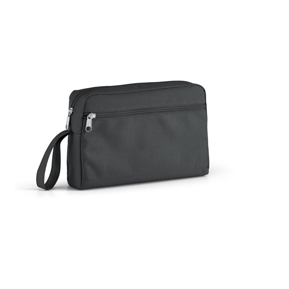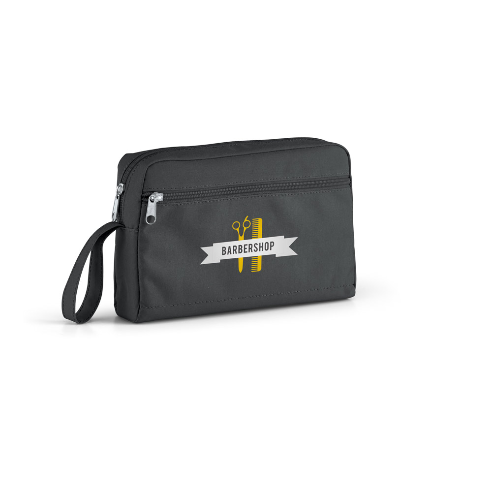 Bolsa de cosméticos em 300D com pega e bolso frontal com zíper. 240 x 160 x 55 mm