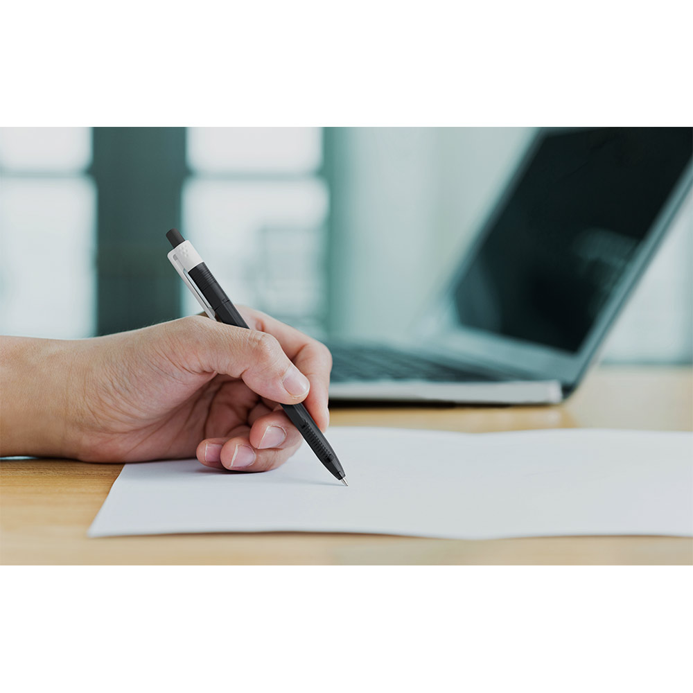 Esferográfica em ABS com acabamento translúcido e clipe branco. Até 1.5 km de escrita. ø9 x 140 mm