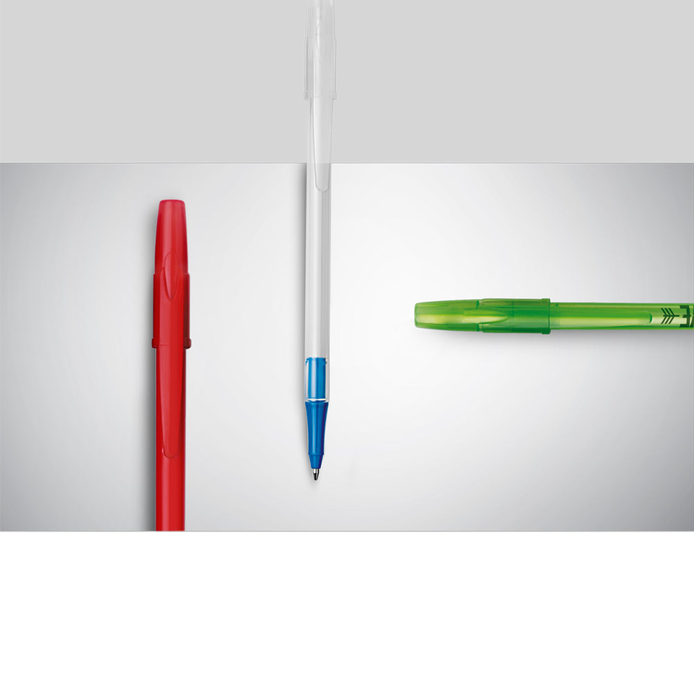 Esferográfica em PP com acabamento brilhante. Até 1.5 km de escrita. Produto certificado de acordo com a portaria Inmetro nº423 de 8/out/2021. ø8 x 151 mm