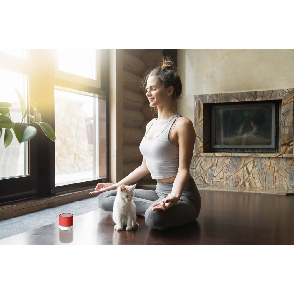 Caixa de som portátil com microfone, em ABS e acabamento emborrachado. Transmissão sem fios BT v30 e leitor de cartões TF. Com 3W/4Ω e autonomia aproximada de 2h. Função para atender chamadas, controle de volume e conexão à playlist do dispositivo móvel. Incluso cabo USB / micro USB para carregar. ø59 x 55 mm