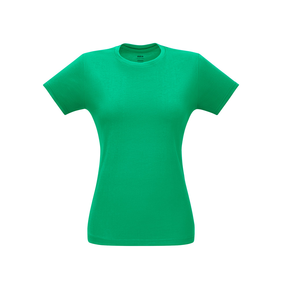 Camiseta feminina de corte cinturado em malha 100% algodão (170 g/m2) com fio 30/1 penteado. Com gola em ribana 1×1 com fita de reforço e com costura dupla nas mangas, barra de fundo e laterais. Produto contém certificação ABVTEX . Tamanhos: P, M, G, GG