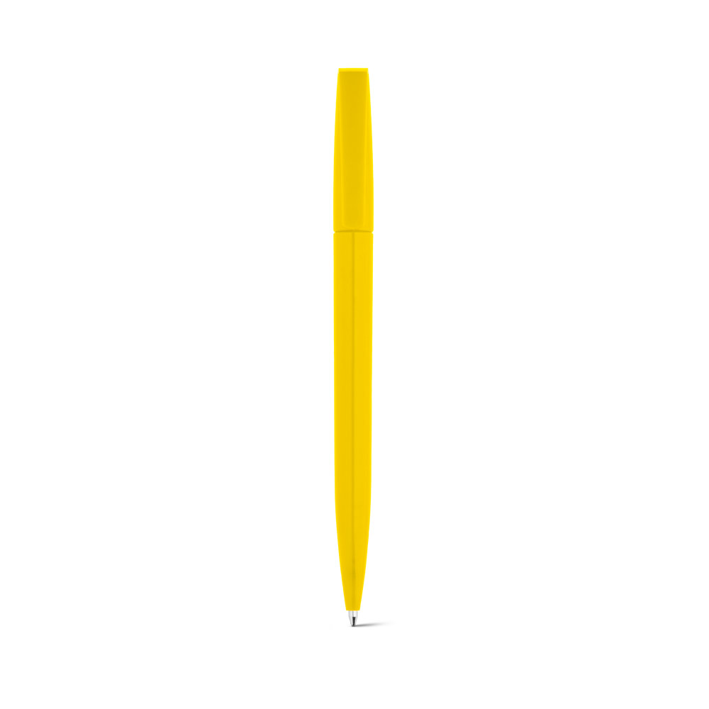 Esferográfica em ABS com acabamento brilhante. Possui mecanismo twist e escrita em azul até 1.5 km. Produto certificado de acordo com a portaria Inmetro nº423 de 8/out/2021. ø10 x 136 mm